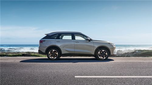 二代哈弗枭龙MAX的车身侧面则采用“流星破空”肩线设计,线条笔直紧绷,串联起头灯与尾灯,宛如流星划破天际,展现出凌厉锋锐的动感姿态,这一设计赋予车辆一种蓄势待发的运动感,仿佛随时准备冲刺;而“豚跃出水”悬浮式车顶设计则勾勒出车顶、鳍状天线、车尾高位扰流板的连贯线条,有效降低风噪与能耗。悬浮式车顶设计将整车视觉重心巧妙拉低,同时巧妙隐藏B、C、D柱,营造出强烈的运动氛围,让车辆在静止时也能散发出一种跃跃欲试的动感气息;19英寸“繁花旋影”五幅轮毂设计同样别具匠心,从花朵中汲取灵感,融入螺旋状元素,如旋转飘落的花瓣,灵动写意,为车辆增添了一份优雅与艺术气息。