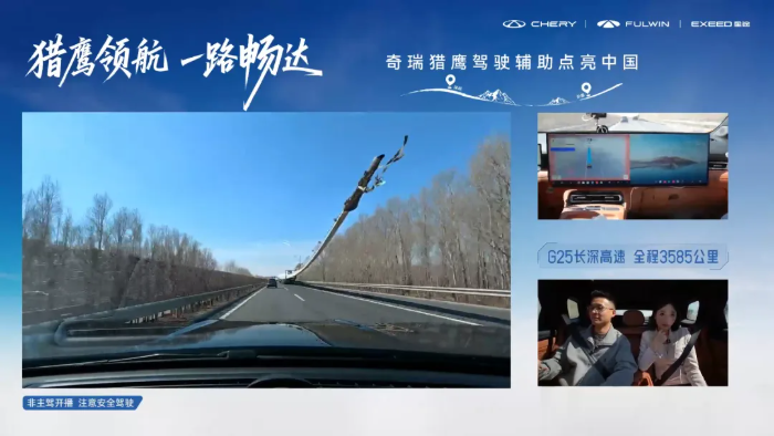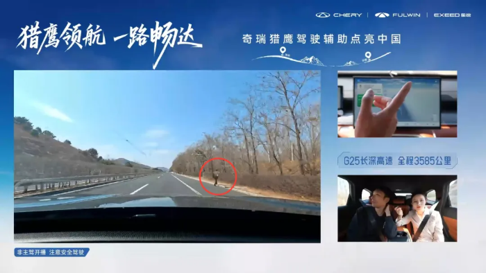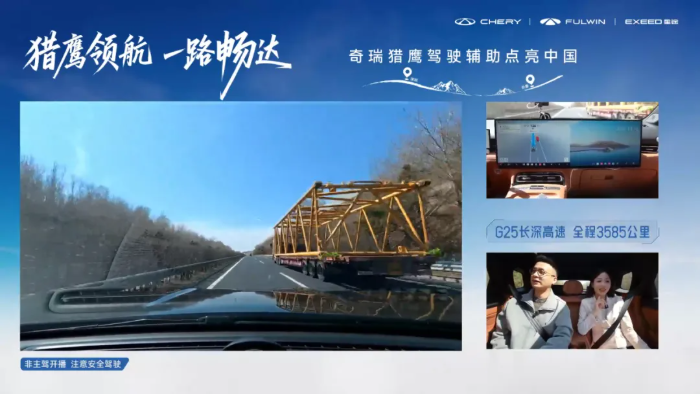 奇瑞猎鹰驾驶辅助技术突破,在千里征途上展现得淋漓尽致。三款车型各展技术所长,在高速主路、长隧道、匝道等复杂路况下稳定运行,成功完成包括大风车扇叶避让、超宽货车避让、高速行人规避等多项高难度考验,凭借专属核心技术形成差异化优势,携手完成了这场硬核挑战。