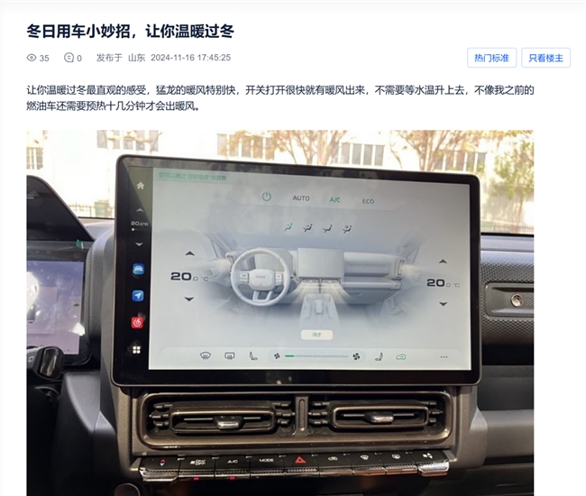 此外,哈弗猛龙在细节设计上的用心也赢得用户青睐。冬季来临之际,APP远程启动功能让出行不再寒意刺骨,空调制热好、座舱升温快,不费时间等待温暖了每个驾乘者的心。标配主驾座椅8向调节+记忆+前排座椅通风+外后视镜记忆,出行更加舒适便捷,新增255/60规格轮胎、19英寸轮毂,满满诚意增配不增价,满足用户更多需求。哈弗猛龙就像是一位全能选手,不同用户都能在它身上找到自己关注的点。